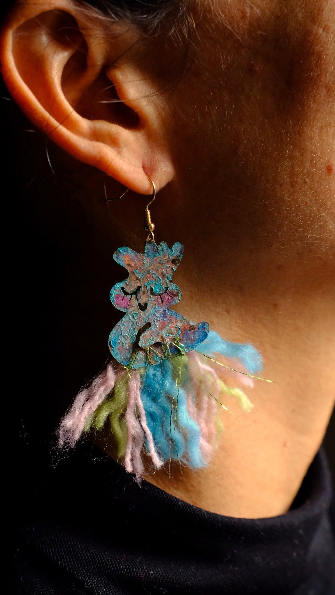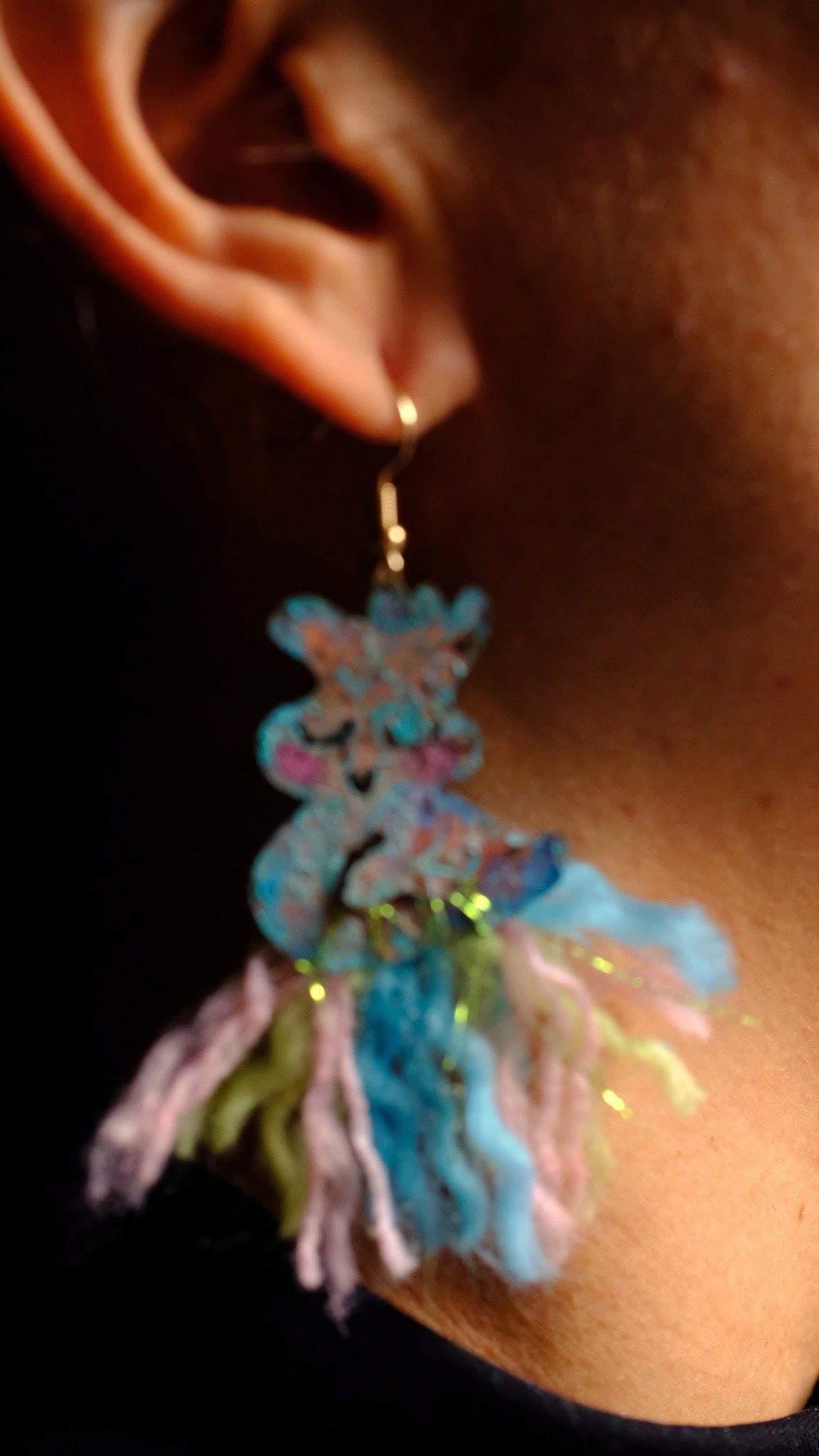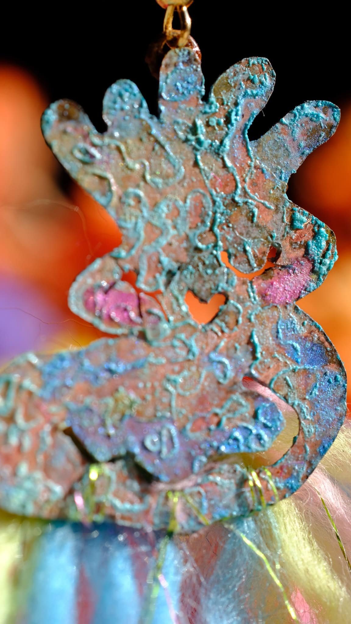 - Artisanal earrings, hand-painted and kissed by sunlight, brass birds with gold-plated details and threads of color.